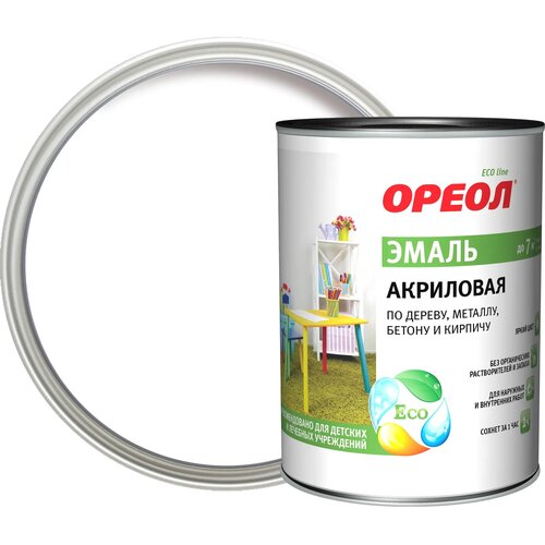 Эмаль акриловая Ореол глянцевая цвет белый 0.9 кг