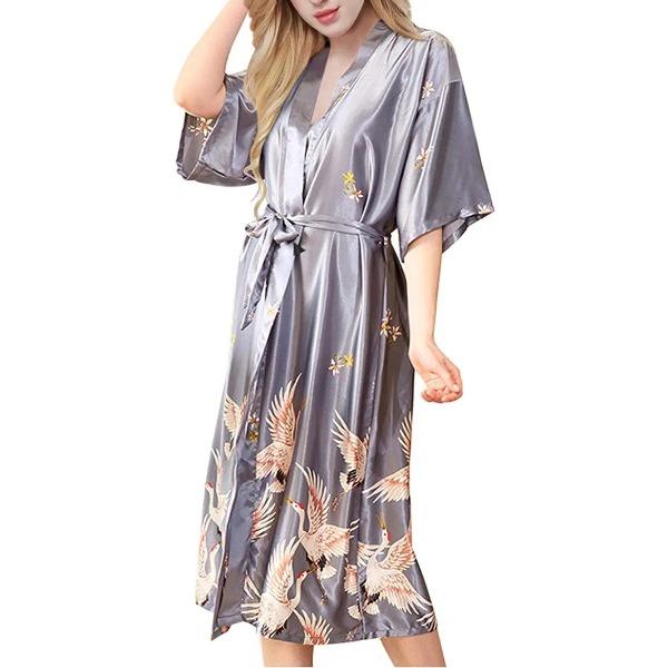 Черный Летний Сатиновый Кимоно Халат Женский Невеста Подружка Невесты Свадебный Халат Платье Ночная Сорочка Сексуальный Цветочный Длинный M-3XL XL серебряный