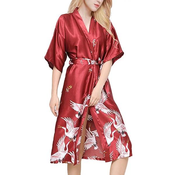 Черный Летний Сатиновый Кимоно Халат Женский Невеста Подружка Невесты Свадебный Халат Платье Ночная Сорочка Сексуальный Цветочный Длинный M-3XL S вино красного