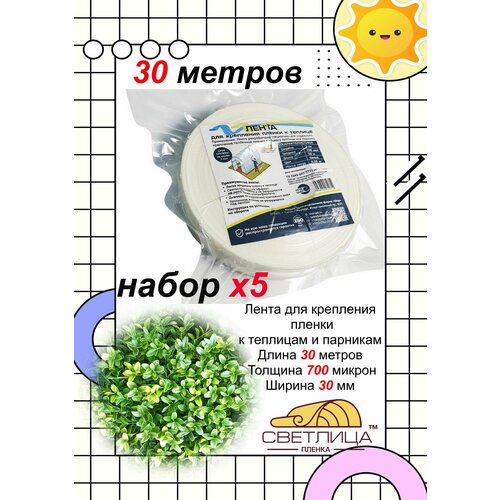 Лента Светлица для крепления пленки в теплице 30 м, толщина 700 мкм, набор из 5 штук
