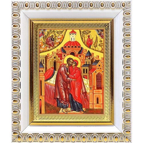 Зачатие Пресвятой Богородицы, икона в белой пластиковой рамке 8,5*10 см