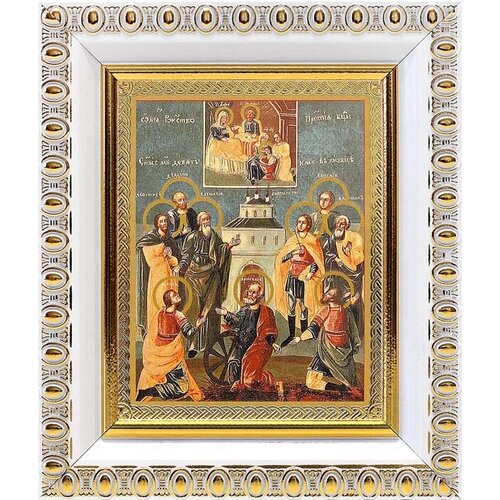 Девять мучеников Кизических, икона в белой пластиковой рамке 8,5*10 см
