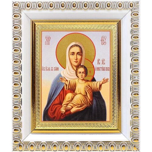Икона Божией Матери "Аз есмь с вами и никтоже на вы", в белой пластиковой рамке 8,5*10 см