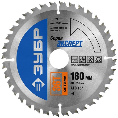 ЗУБР Оптима 180 x 30мм 36Т, диск пильный по дереву, 36903-180-30-36, серия Профессионал
