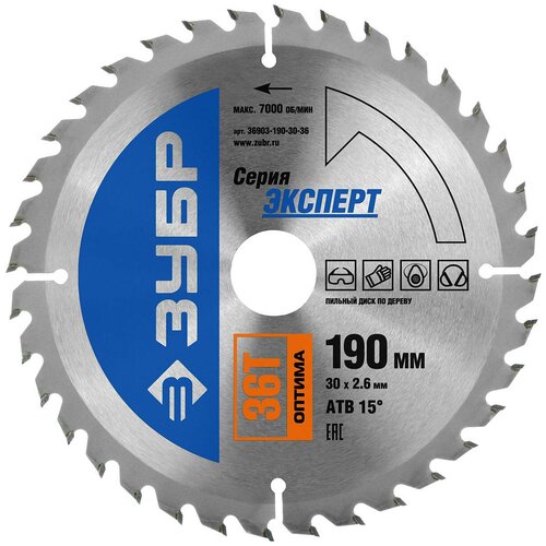 ЗУБР Оптима 190 x 30мм 36Т, диск пильный по дереву, 36903-190-30-36, серия Профессионал