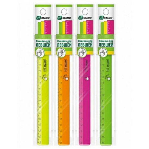 Линейка для левшей СТАММ 16 см 4 цвета
