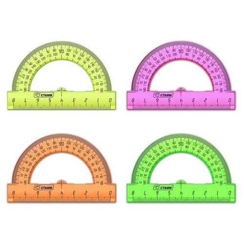 Транспортир 8 см Стамм Neon Cristal, 180°, микс