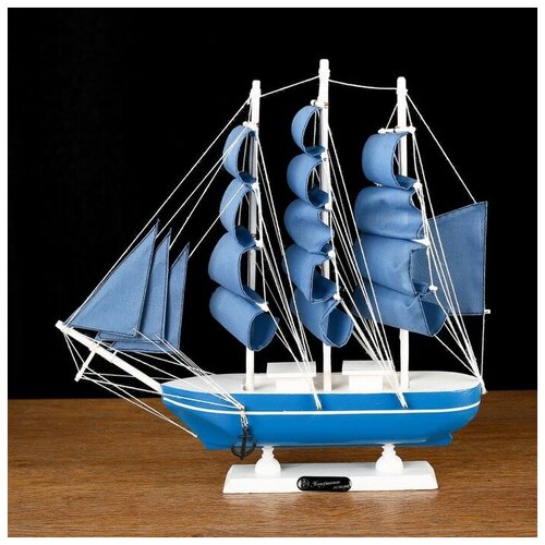 Корабль сувенирный средний «Алида», борта голубые с полосой, паруса голубые, 32х31,5х5,5 см