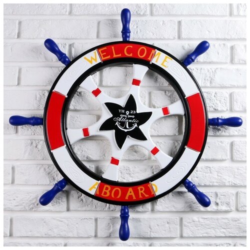 Штурвал сувенирный "Добро пожаловать на борт" красный 62см