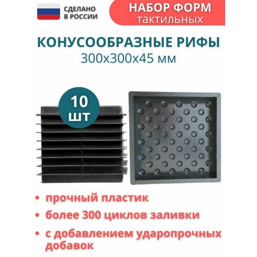 Нет бренда Форма для тротуарной плитки Тактильная, Конусообразные рифы (300х300х45). Комплект - 10 шт.