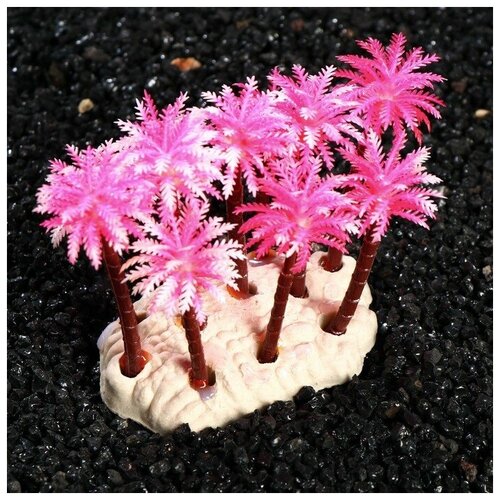 Растение силиконовое аквариумное, светящееся в темноте, 6,5 х 18 см, розовое