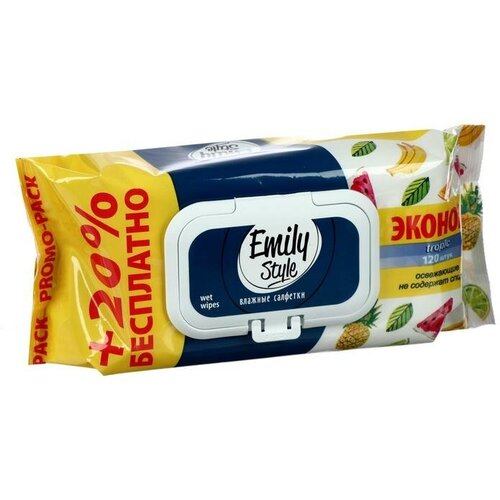 Emily Style промо Эмили Стайл влаж салфетки Tropic 100+20 шт. эконом, +20% бесплатно) (14шт)