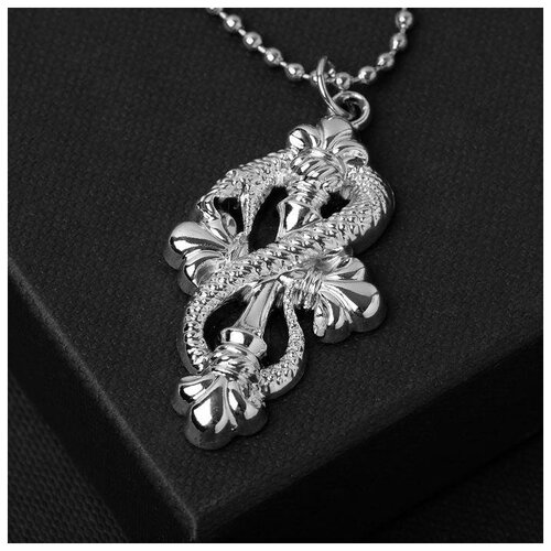 Кулон унисекс "Крест" со змеёй, цвет серебро, 47 см
