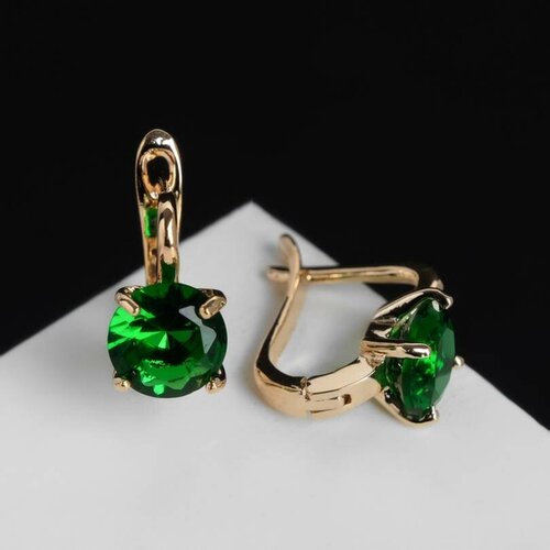 Серьги женские, Queen Fair, со стразами - Блум круглые, зеленые, 1.1 см, 1 пара
