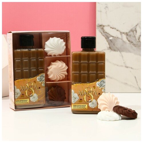 Набор "Чудесной тебе!", гель для душа во флаконе шоколад, 300 мл, мыло в форме зефира, 3 шт. 92537