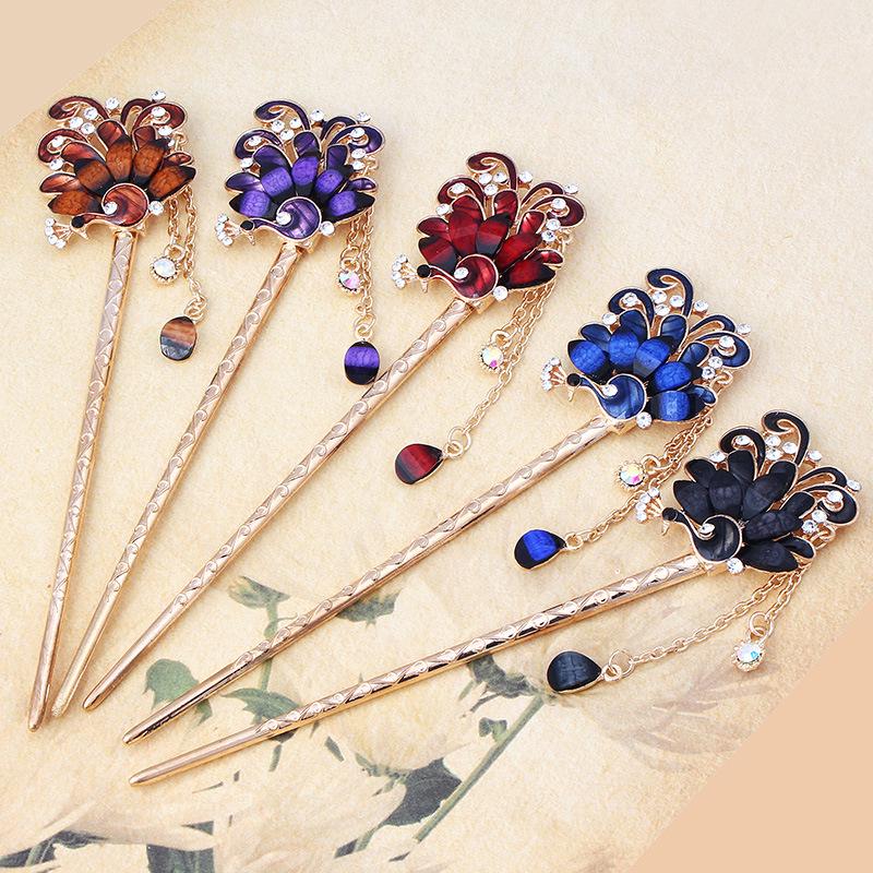 Винтаж Павлин Кисточки Волос Палочка Шпильки Для Волос Палочки Булавки Для Женщин Девушки Укладка Волос Ювелирные аксессуары