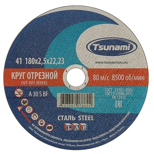 Круг отрезной по металлу TSUNAMI A 30 R/S BF L, 180 х 22 х 2.5 мм