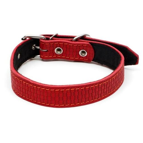 Ошейник кожаный с тиснением на синтепоне, 65 х 3 см, ОШ 40-55 см, красный