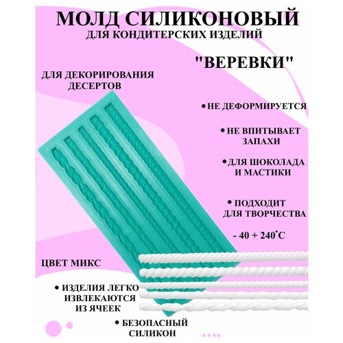 Молд бордюр три веревки 18x5 см, форма для мастики и шоколада веревка, силиконовые молды, молды кондитерские, молд бордюр