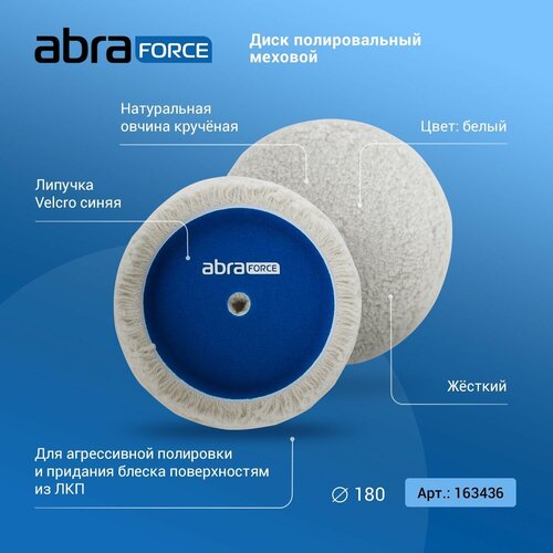 Abraforce Круг полировальный меховой, крученая шерсть, цвет: белый, 180мм, липучка белая