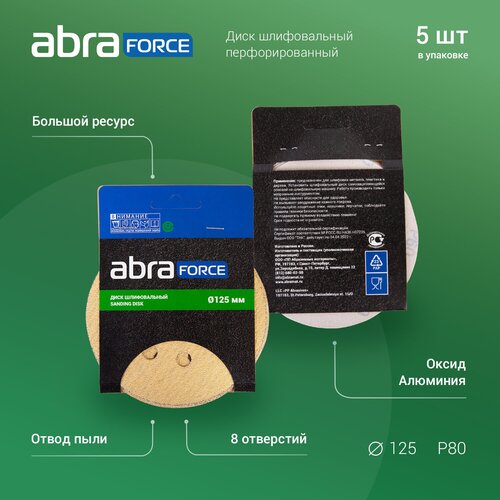 Диск шлифовальный перфорированный ABRAforce с липучкой Р80 D 125мм (уп. 5 шт.)