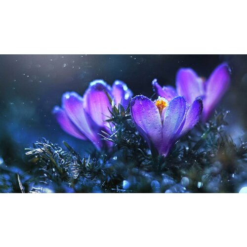 Картина на холсте 50x70 LinxOne "Цветы весна крокусы alina" интерьер для дома / декор на стену / дизайн