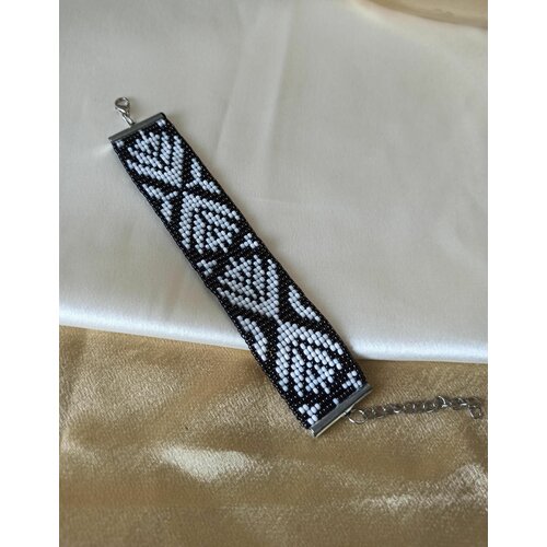 Браслет на руку. Браслет из бисера. Браслет черный. Браслет белый.