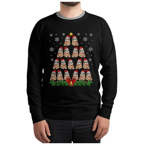 Свитшот с принтом Ленивая Ёлка / Ленивцы / Толстовка Черная Размер 56