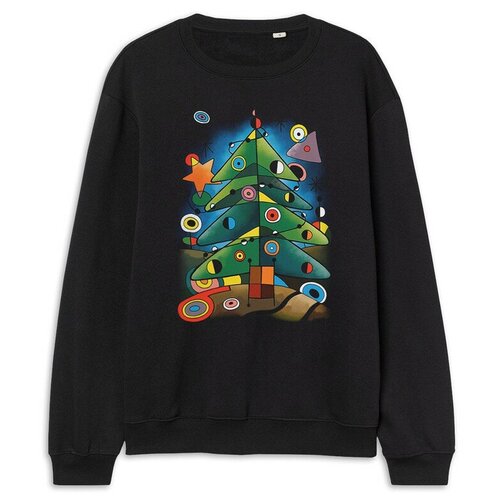Свитшот с принтом Кандинский - Новогодняя ёлка / Толстовка Черная Размер 50