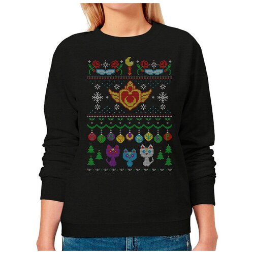 Свитшот с новогодним узором / Аниме Сейлор Мун / Толстовка Черная Размер 42