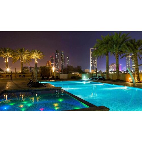 Постер на экокоже 60x100 LinxOne "Город бассейн огни ОАЭ Abu" интерьер для дома / декор на стену / дизайн