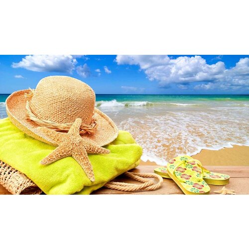 Картина на холсте 33x50 LinxOne "Accessories пляж море" интерьер для дома / декор на стену / дизайн