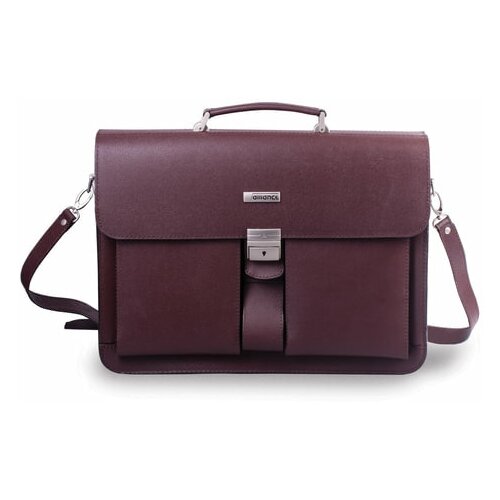 Портфель из натуральной кожи, 42х30х10 см, 2 отделения, замок с ключом, коричневый, 2-106