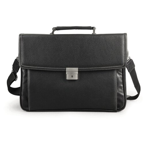 Портфель из натуральной кожи, 38,5×28×11 см, 2 отделения, замок с ключом, черный