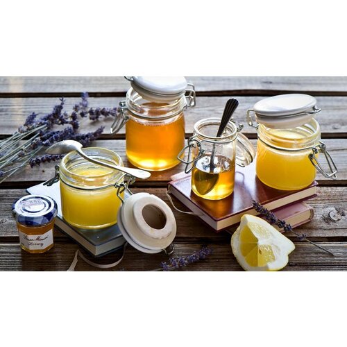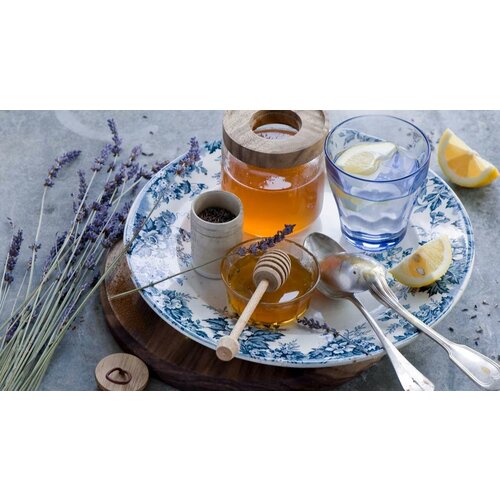 Постер на экокоже 50x70 LinxOne "Лаванда мед натюрморт anna" интерьер для дома / декор на стену / дизайн