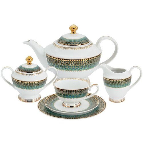 Чайный сервиз Бухара зелёный, 6 персон, 23 предмета (Anna Lafarg Midori)