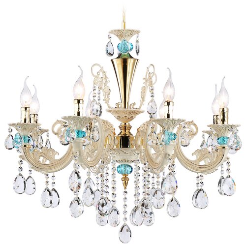 Подвесная люстра с хрусталем TR4926/8 GD/WH/CL золото/белый/прозрачный E14*8 max 40W D740*630