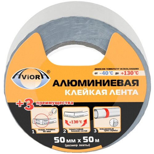 Клейкая лента алюминиевая Aviora, 50мм* 50м, негорючая, непроницаемая, влагостойкая