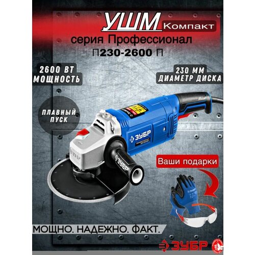 Угловая шлифовальная машина 2600 Вт ЗУБР УШМ-П230-2600 П