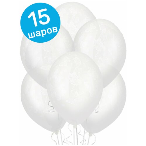 Воздушные шары латексные Riota на свадьбу, Бабочки, прозрачные, набор 15 шт.
