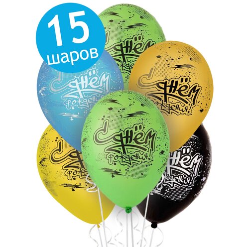 Воздушные шары латексные Belbal Граффити, С Днём рождения, набор 15шт