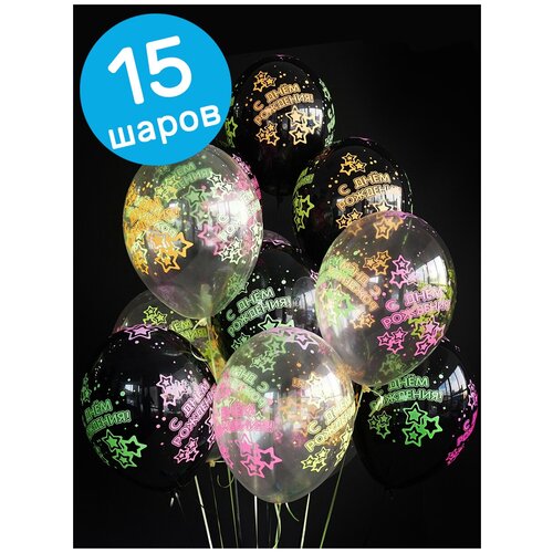 Воздушные шары латексные Belbal Неоновые, С Днем рождения, 35 см, набор 15 шт