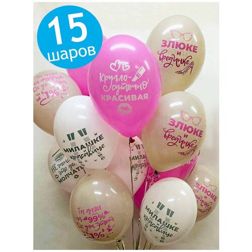 Воздушные шары латексные Belbal Саркатические Для истинной леди, белые и розовые, набор 15 шт