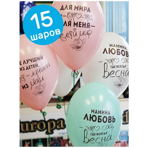 Воздушные шары латексные Belbal С 8 Марта, Мама, набор 15 шт