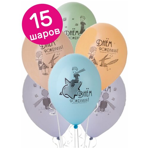Воздушные шары латексные Belbal Маленький Принц, С Днем рождения, набор 15 шт