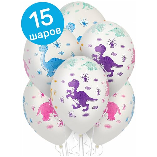 Воздушные шары латексные Belbal Динозаврики, белые, 15 шт.