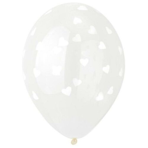 Шар латексный 14" «Сердца белые», кристалл, шелкография, набор 25 шт.