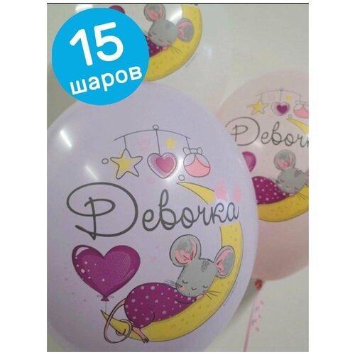 Воздушные шары латексные Belbal С Рождением девочки, разноцветные, 35 см, набор 15 шт.