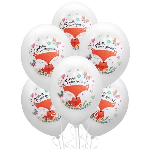 Воздушные шары латексные Belbal Милая лиса, С Днем рождения, 36 см, набор 15 шт