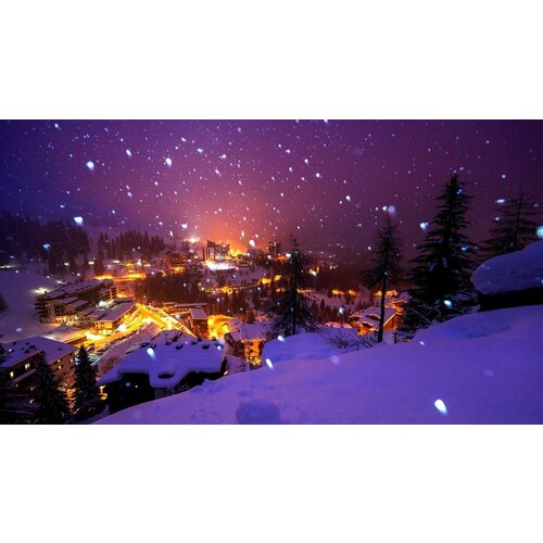 Картина на холсте 50x70 LinxOne "Bergamo зима ночь свет" интерьер для дома / декор на стену / дизайн